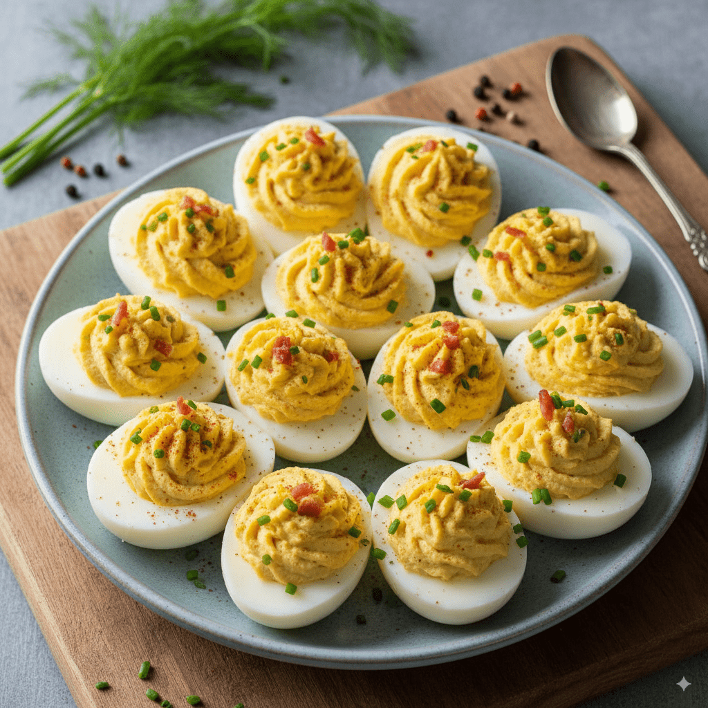 Deviled Eggs are a classic appetizer made with creamy, tangy yolk filling a touch of paprika on top. Perfect for parties, picnics, or holiday gatherings, these bite-sized eggs are easy to prepare and always a crowd favorite.