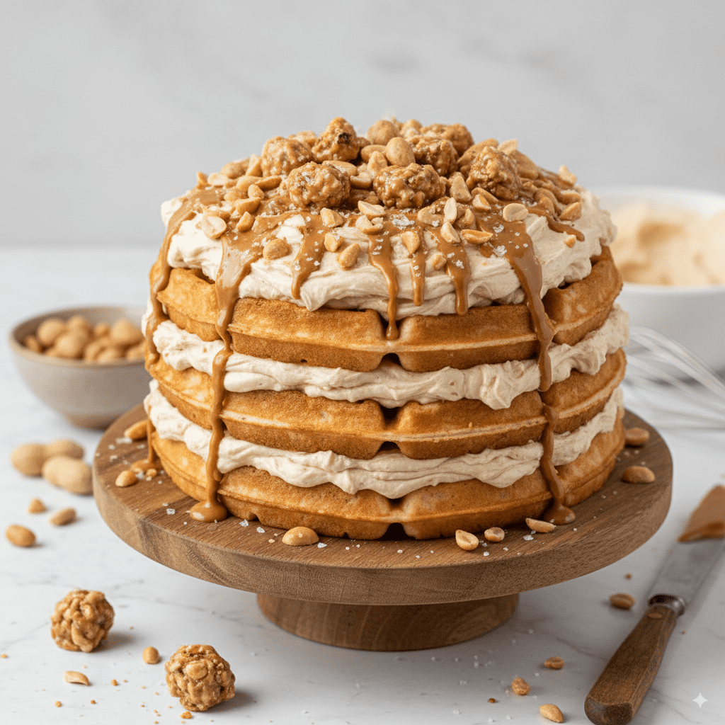 peanut buttercream waffle cake